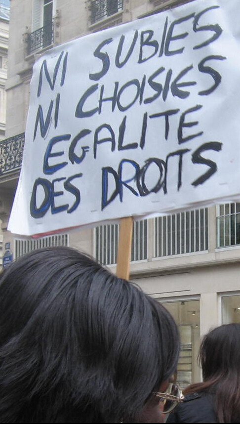 Notre collectif a été créé il y a plus de 20 ans. Dans le contexte d’un mouvement de personnes sans papiers où les femmes étaient relativement nombreuses (1997), nous avons proposé notre soutien, puis nous avons mis en place une permanence d’accueil et de solidarité pour mener cette action de manière durable.